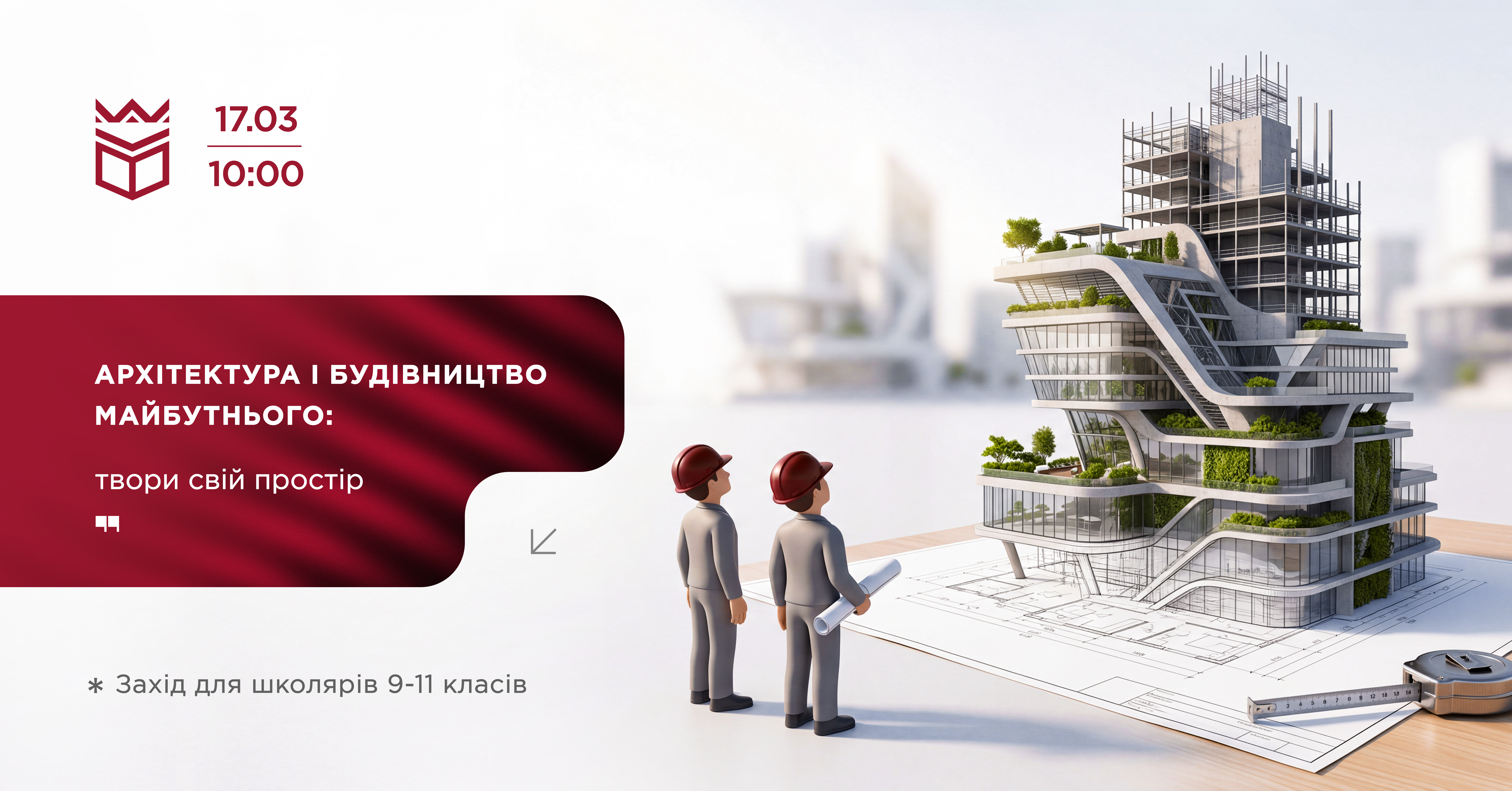 17 березня о 10:00 в конференц-залі на 4 поверсі Університету Короля Данила відбудеться захід для учнів 9-11 класів «Архітектура і будівництво майбутнього: твори свій простір».