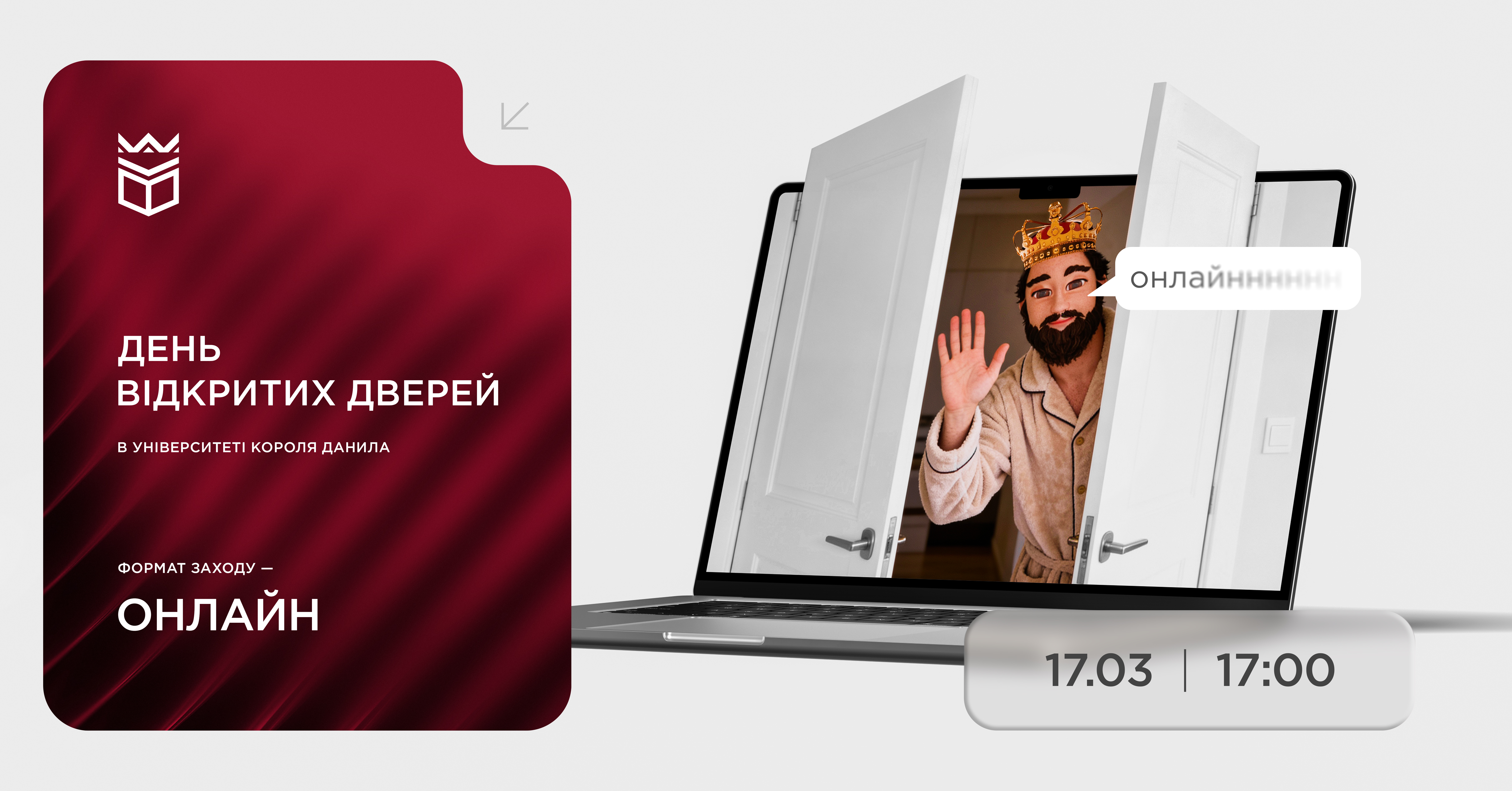 Шановні абітурієнти та батьки, запрошуємо вас узяти участь у Дні відкритих дверей в УКД онлайн! Зустріч відбудеться 17 березня о 17:00.