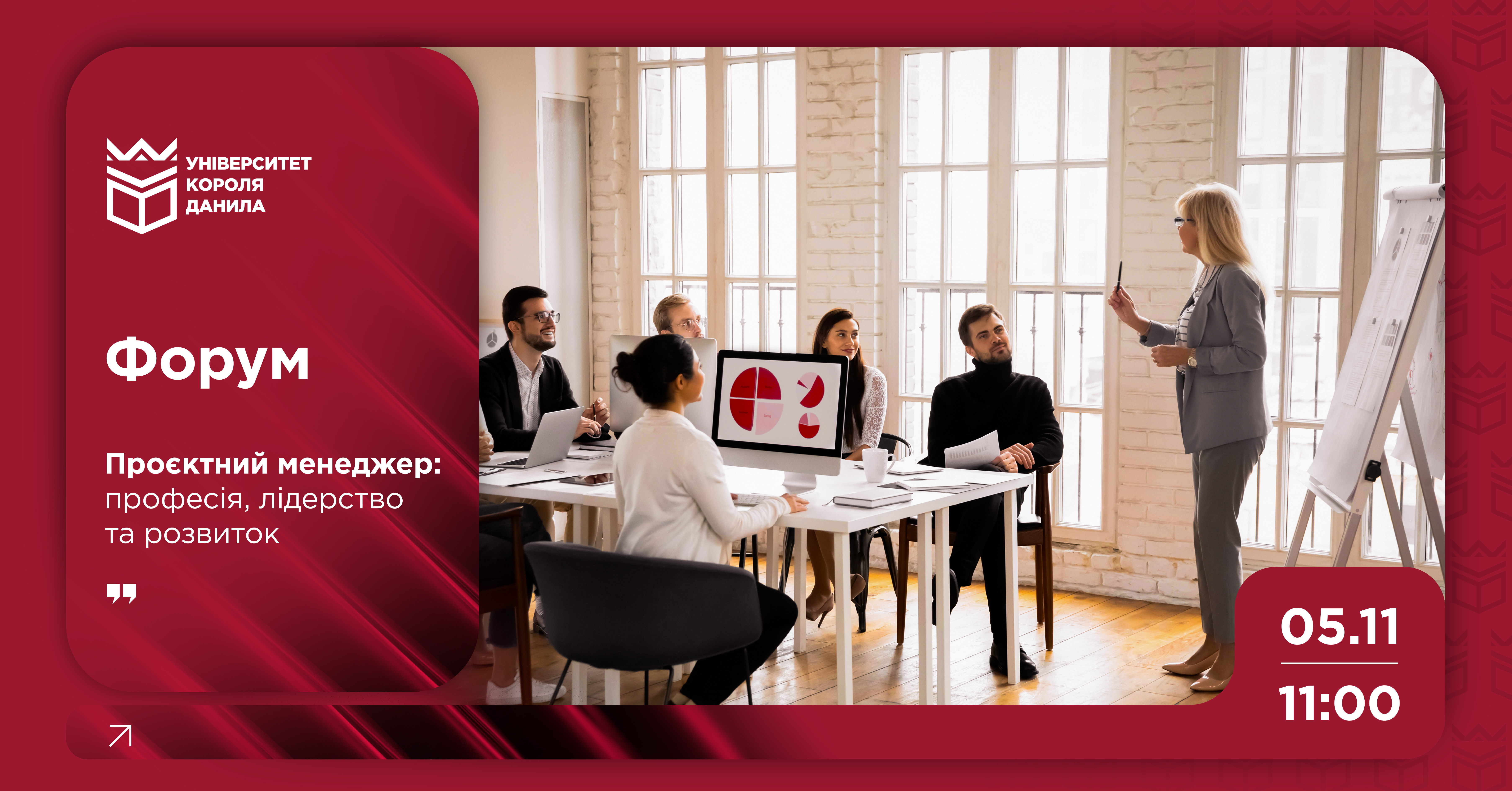 5 листопада об 11:00 у великому залі Університету Короля Данила відбудеться форум «Проєктний менеджер: професія, лідерство та розвиток». Запрошуємо менеджерів всіх сфер діяльності, студентів спеціальності «Менеджмент», стейкхолдерів і роботодавців до участі.