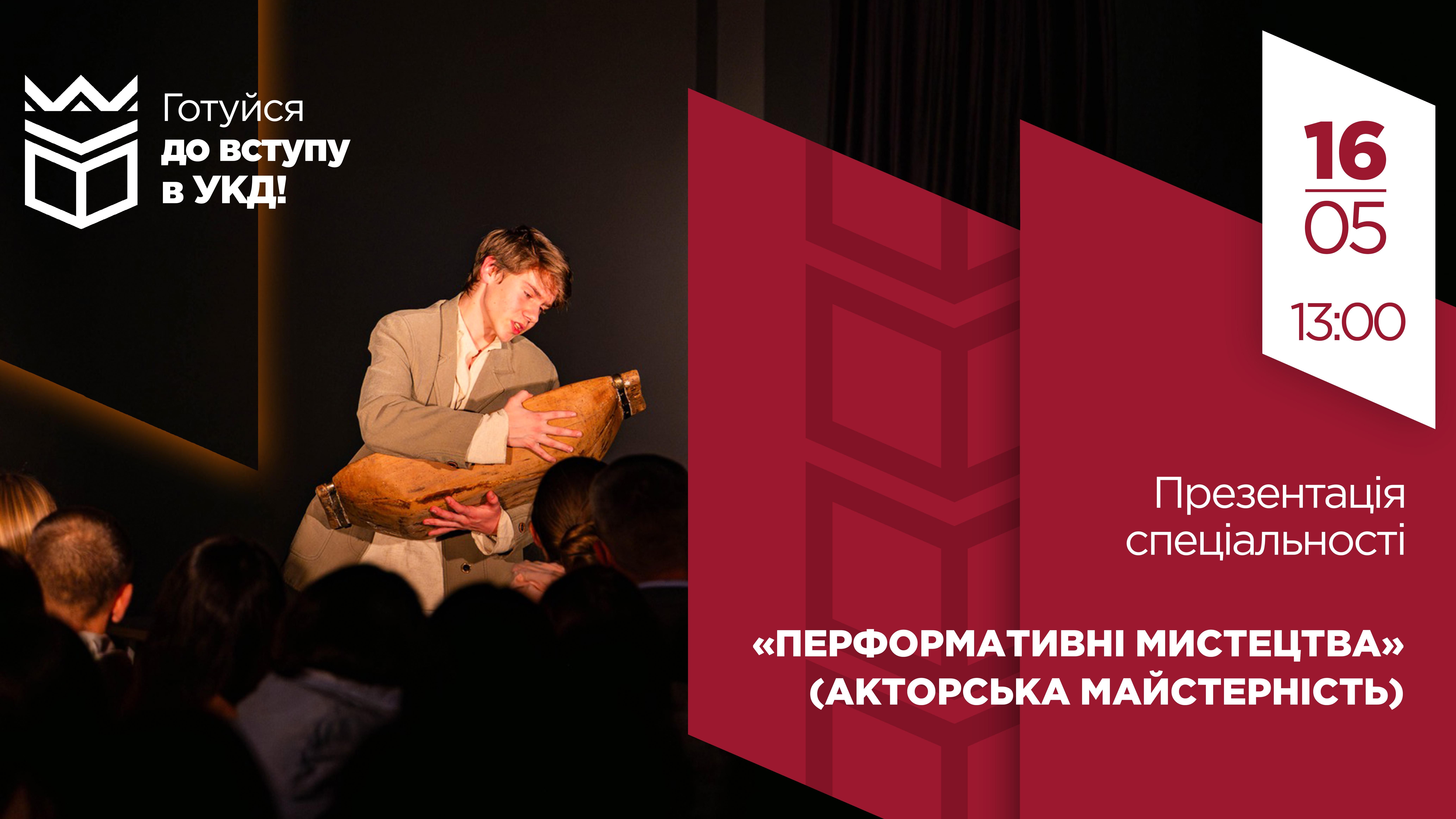 Якщо ви хочете стати актором і не знаєте, із чого розпочати, то чекаємо вас 16 травня о 13:00 на презентації спеціальності «Перформативні мистецтва» (ОП «Акторська майстерність»).