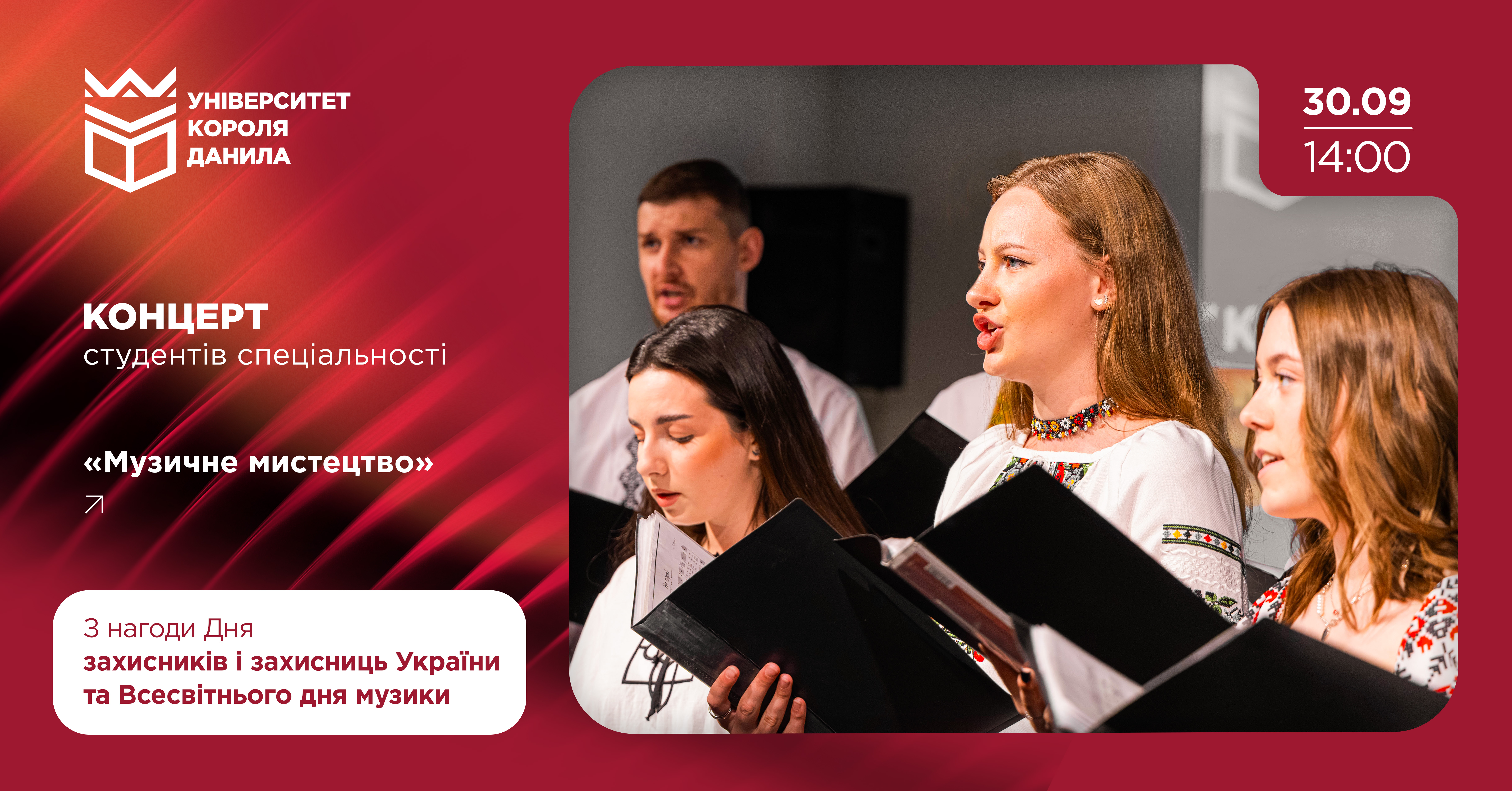 30 вересня о 14:00 в конференц-залі на 4 поверсі відбудеться концерт із нагоди Дня захисників і захисниць України та Міжнародного дня музики.