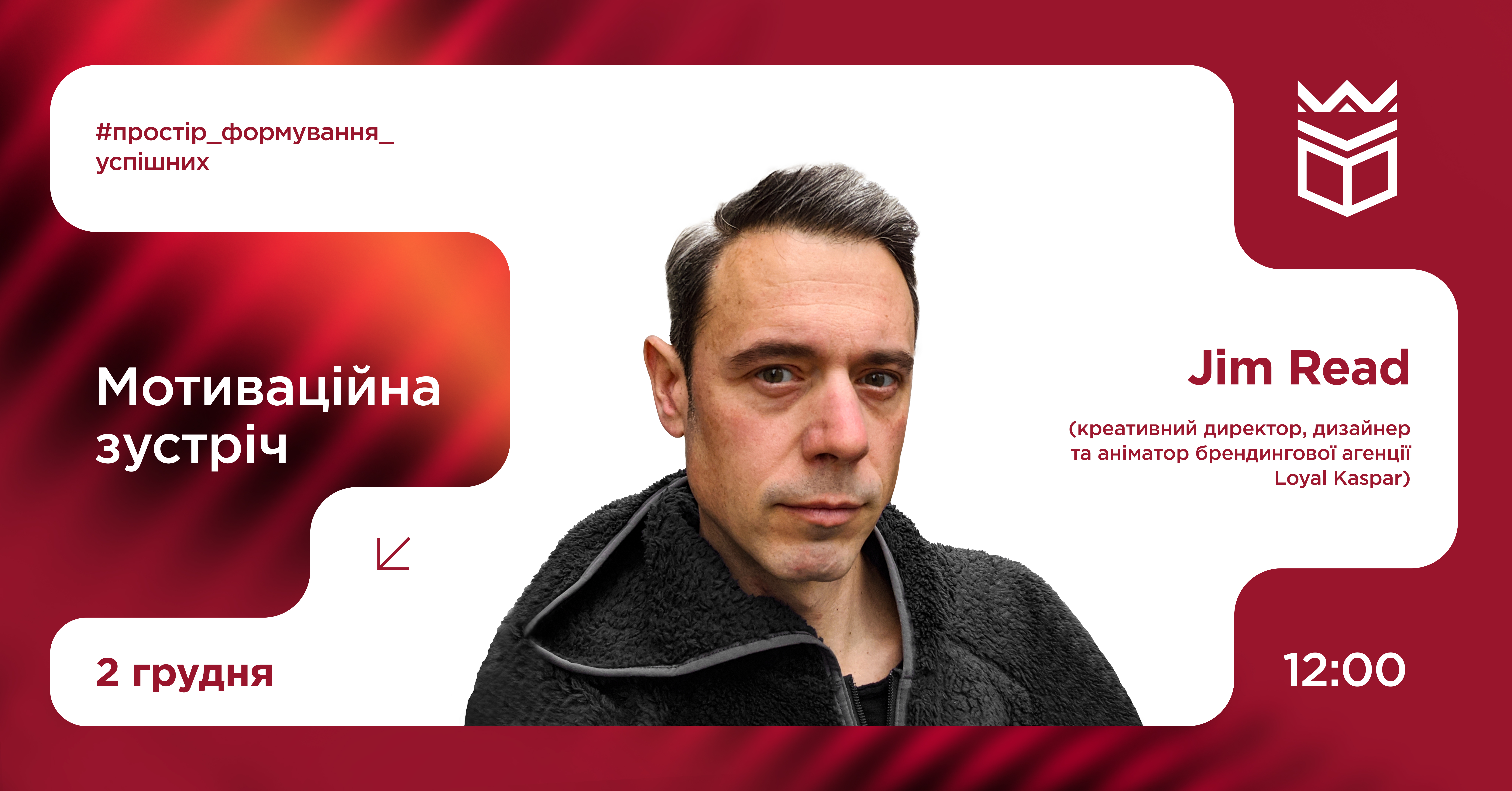 2 грудня о 12:00 у конференц-залі, що на 1 поверсі відбудеться мотиваційна зустріч із Джимом Рідом (Jim Read) – креативним директом, дизайнером та аніматором брендингової агенції Loyal Kaspar.