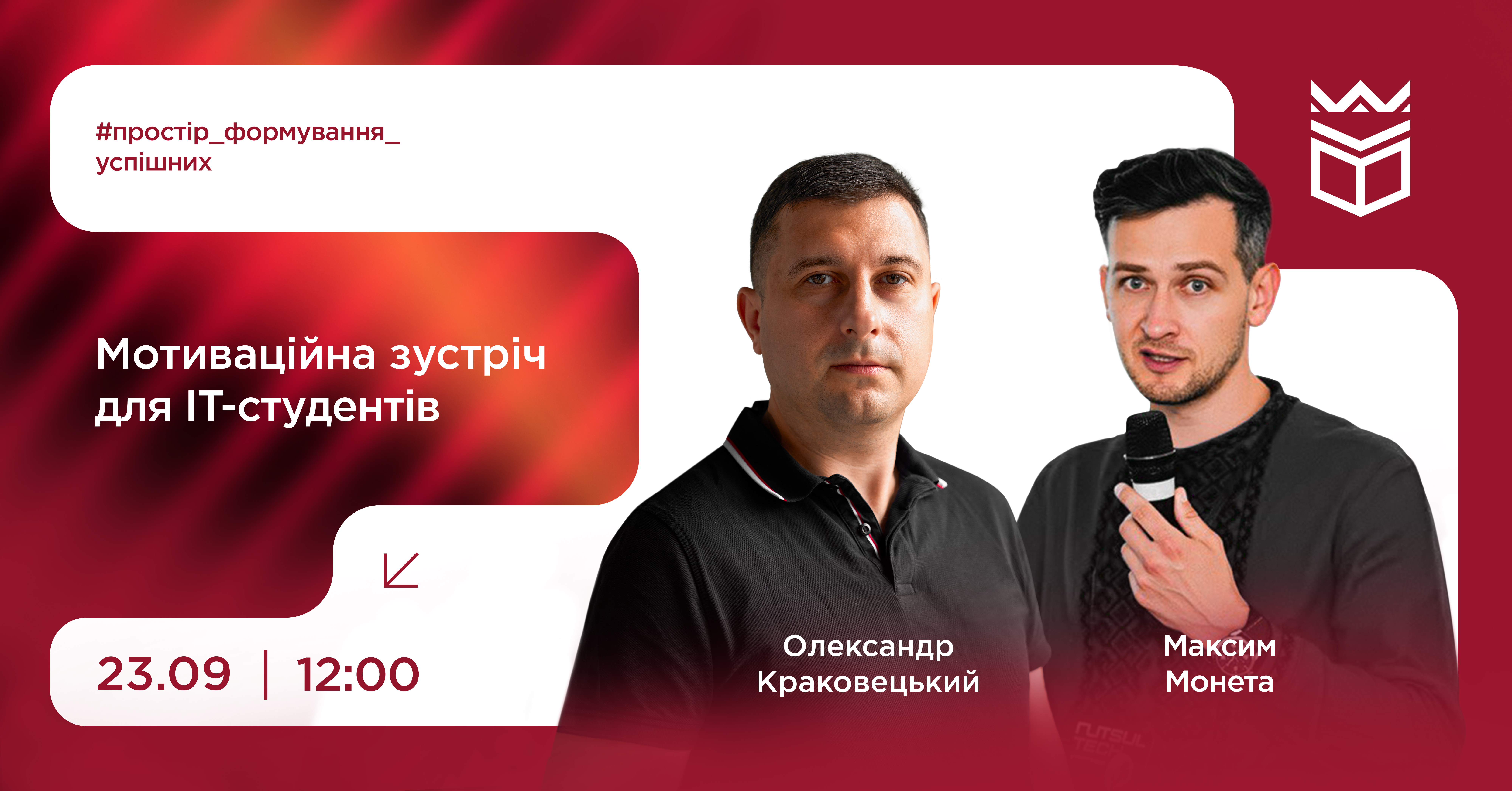 23 вересня о 12:00 у великому актовому залі відбудеться мотиваційна зустріч зі студентами ІТ-спеціальності.