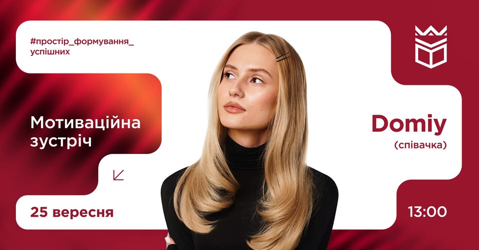 25 вересня о 13:00 год у великому залі Університету Короля Данила відбудеться мотиваційна зустріч із українською співачкою, музиканткою, авторкою та виконавицею власних пісень Domiy.
