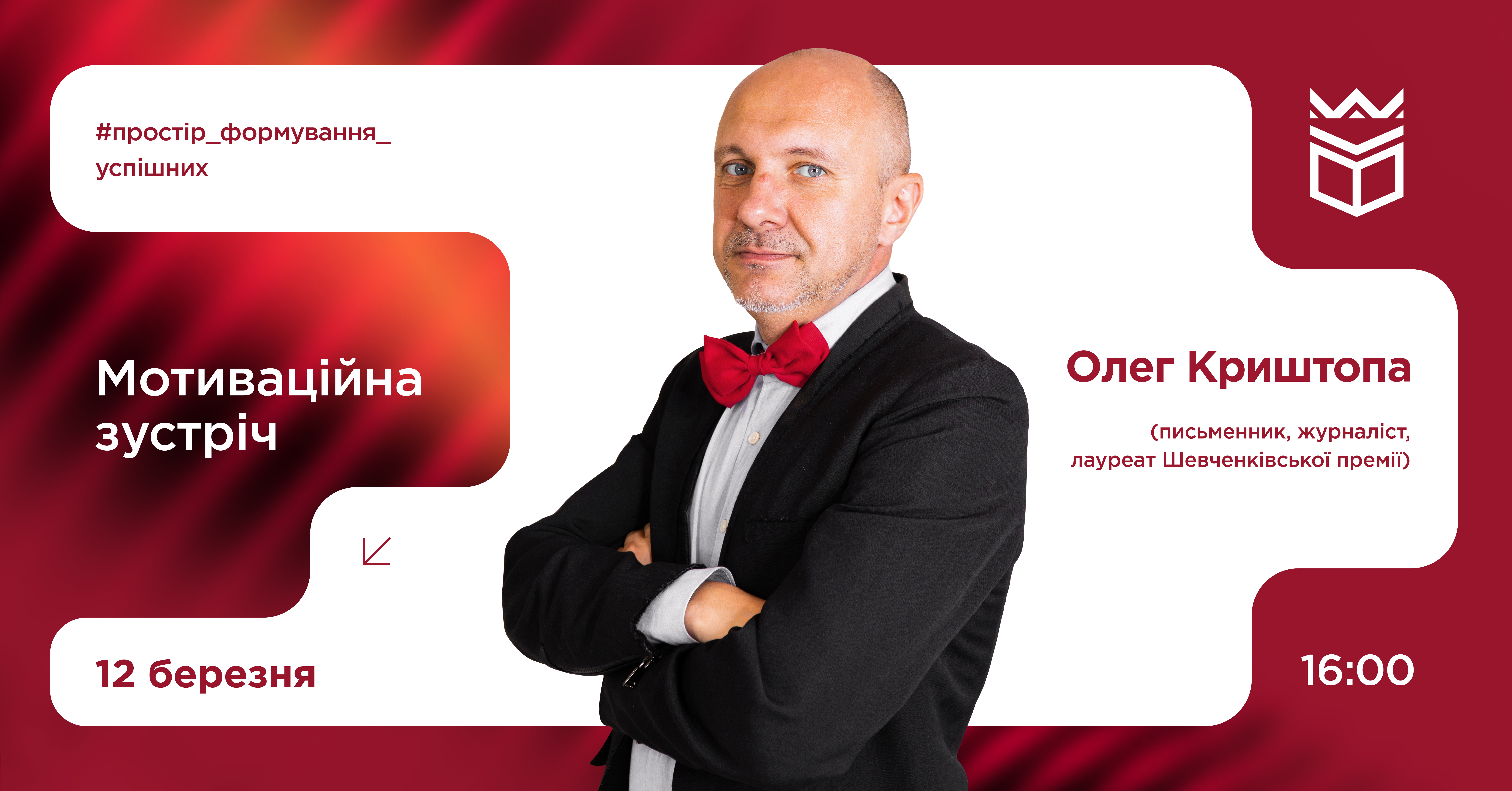 12 березня о 16:00 в конференц-залі на 4 поверсі УКД відбудеться мотиваційна зустріч з Олегом Криштопою.