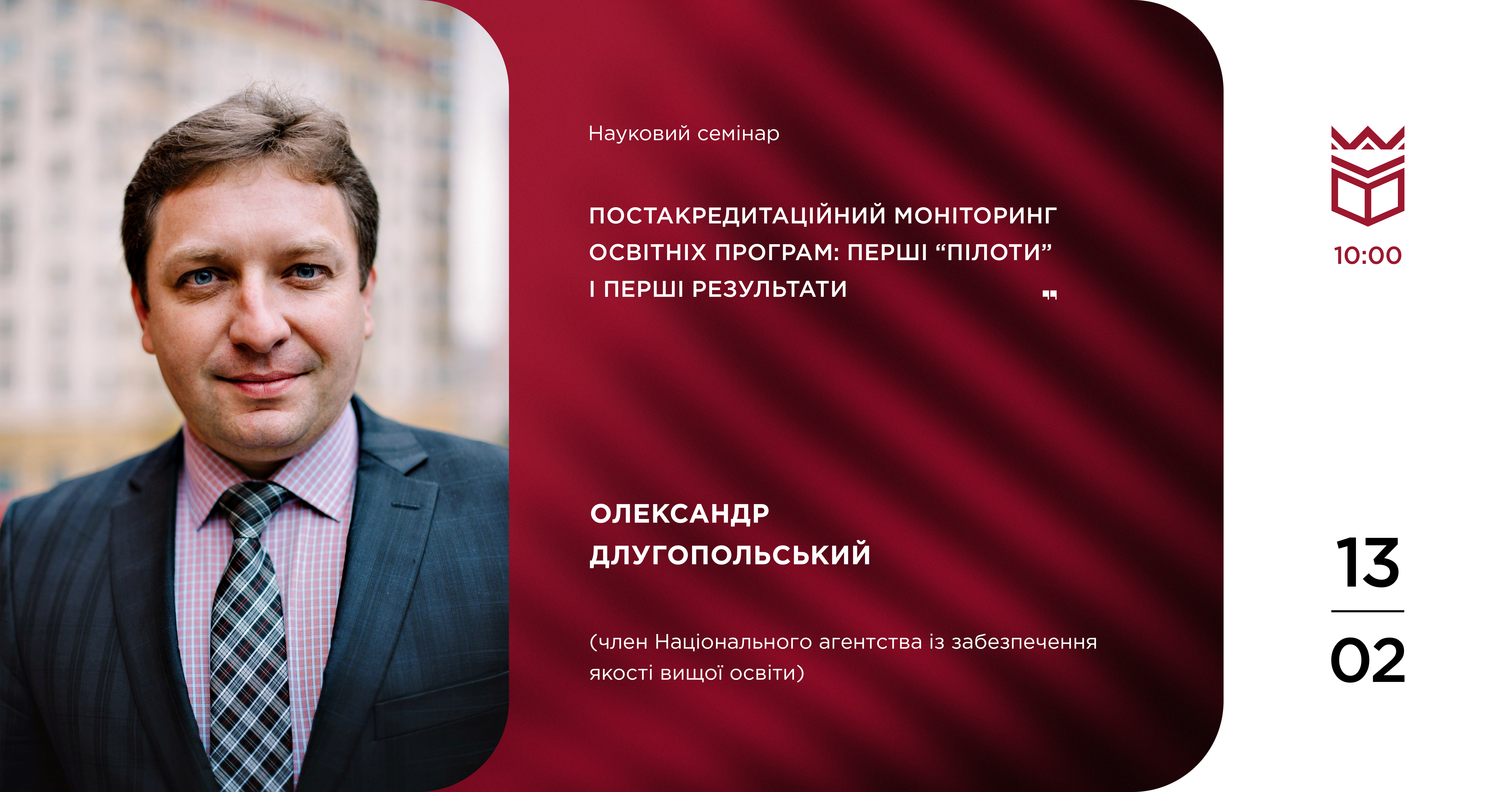13 лютого о 10:00 в конференц-залі на першому поверсі відбудеться науковий семінар для гарантів освітніх програм «Постакредитаційний моніторинг освітніх програм: перші “пілоти” і перші результати».