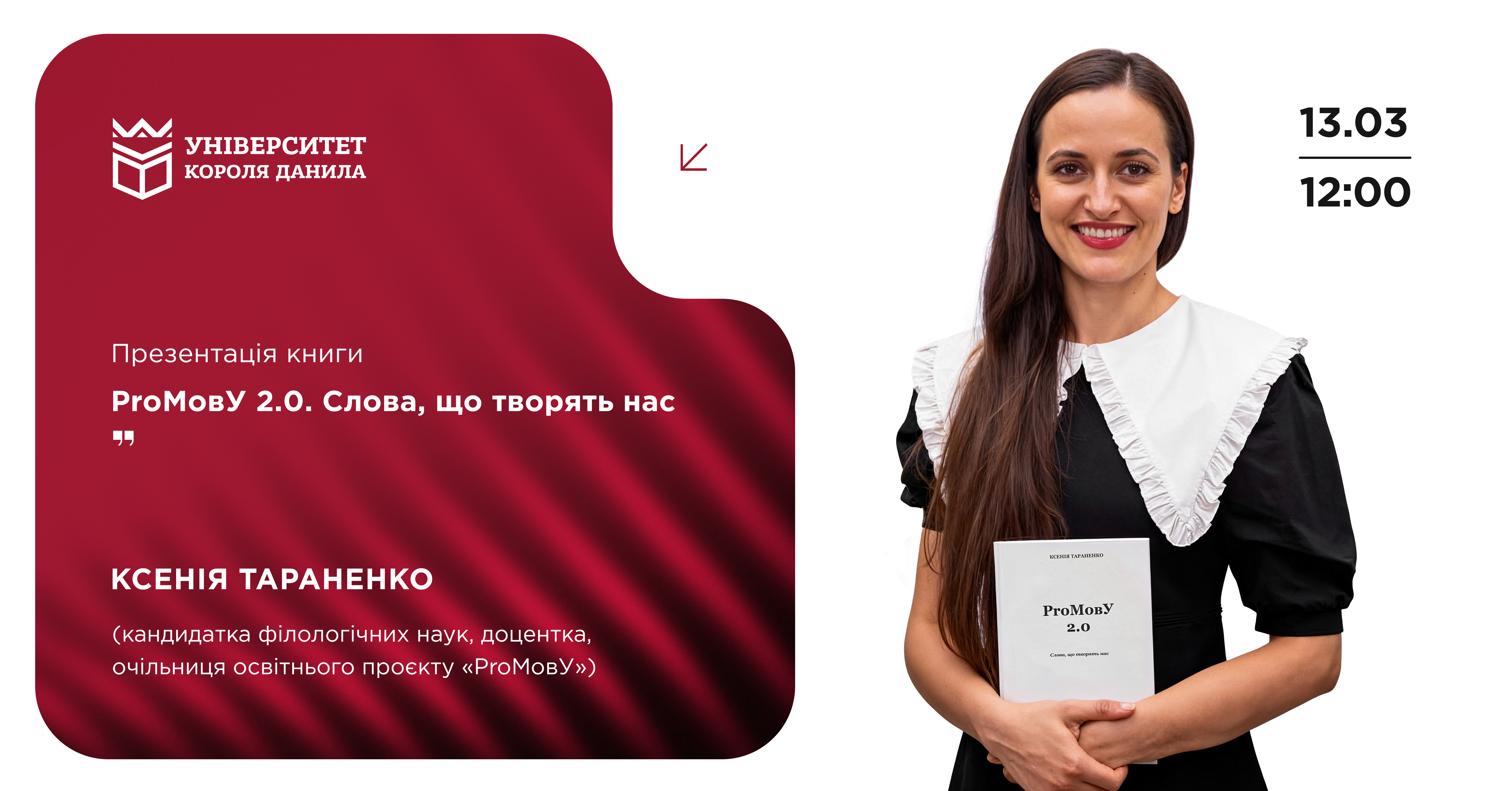 13 березня о 12:00 у конференц-залі на 4 поверсі УКД відбудеться презентація книги «#PROмовУ 2.0» Ксенії Тараненко.
