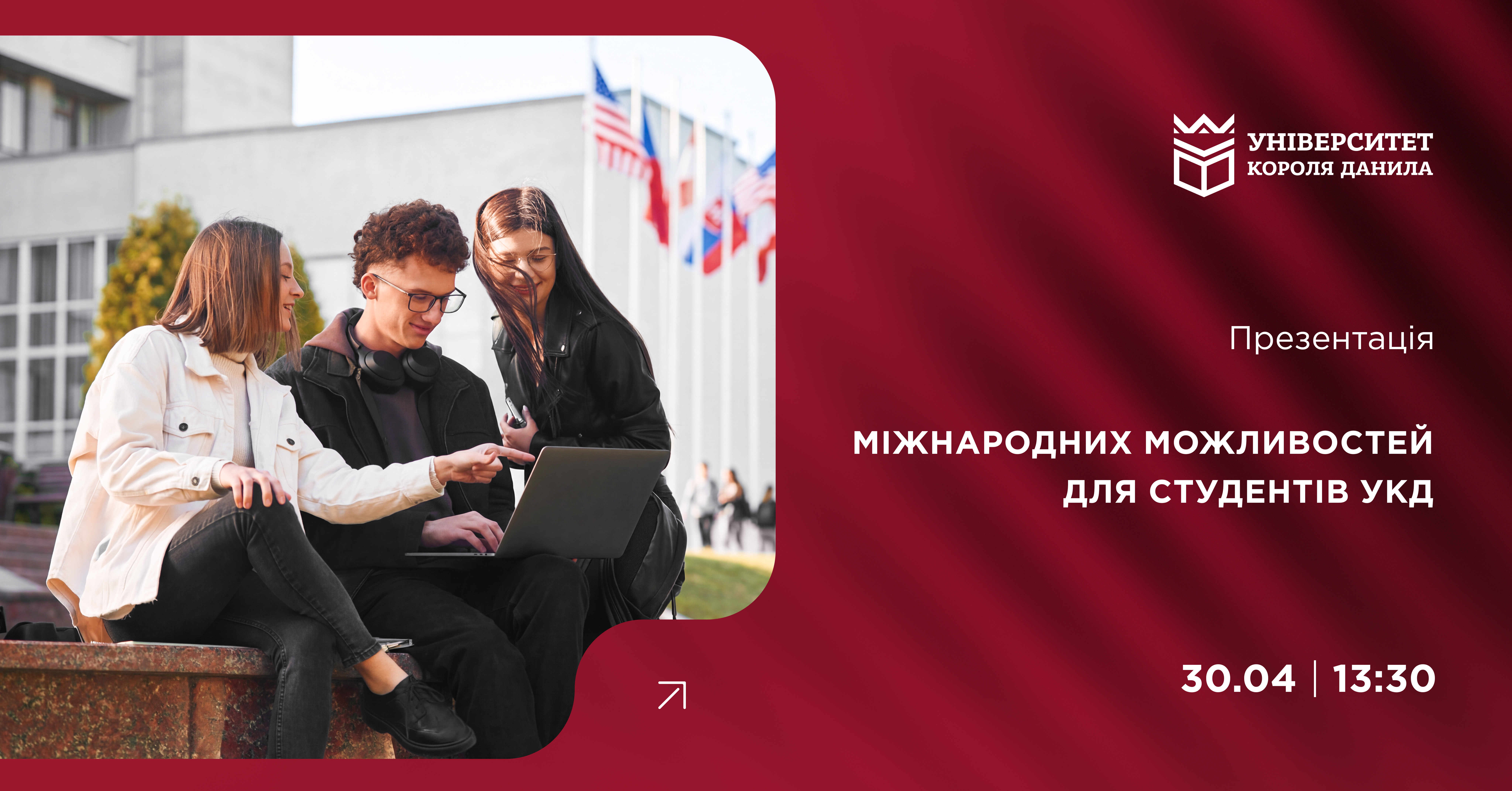 30 квітня о 13:30 у конференц-залі, що на 1 поверсі УКД відбудеться презентація міжнародних можливостей для студентів УКД.