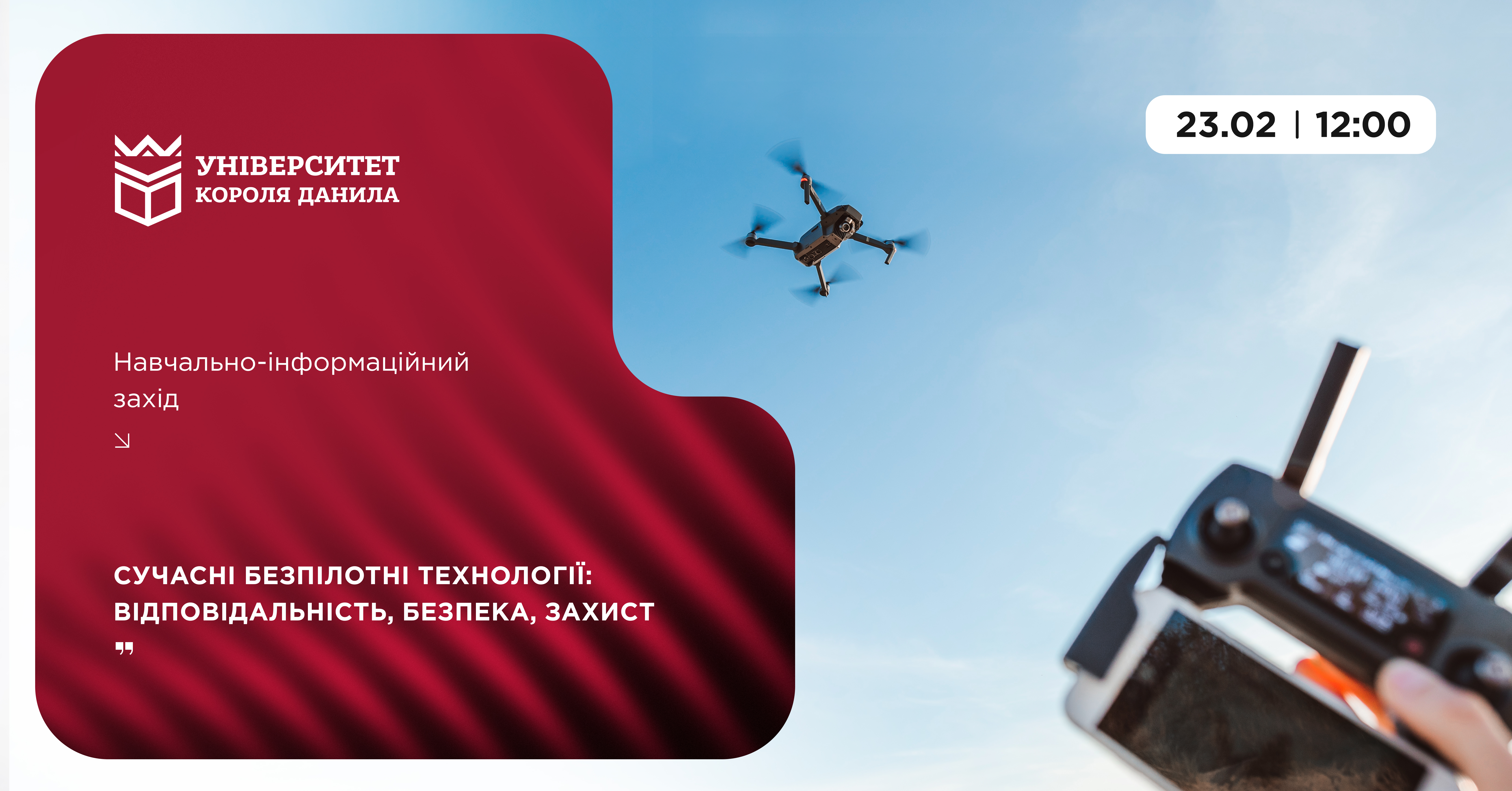 23 лютого о 12:00 у великому залі УКД відбудеться лекційно-дискусійна зустріч «Сучасні безпілотні технології: відповідальність, безпека, захист».