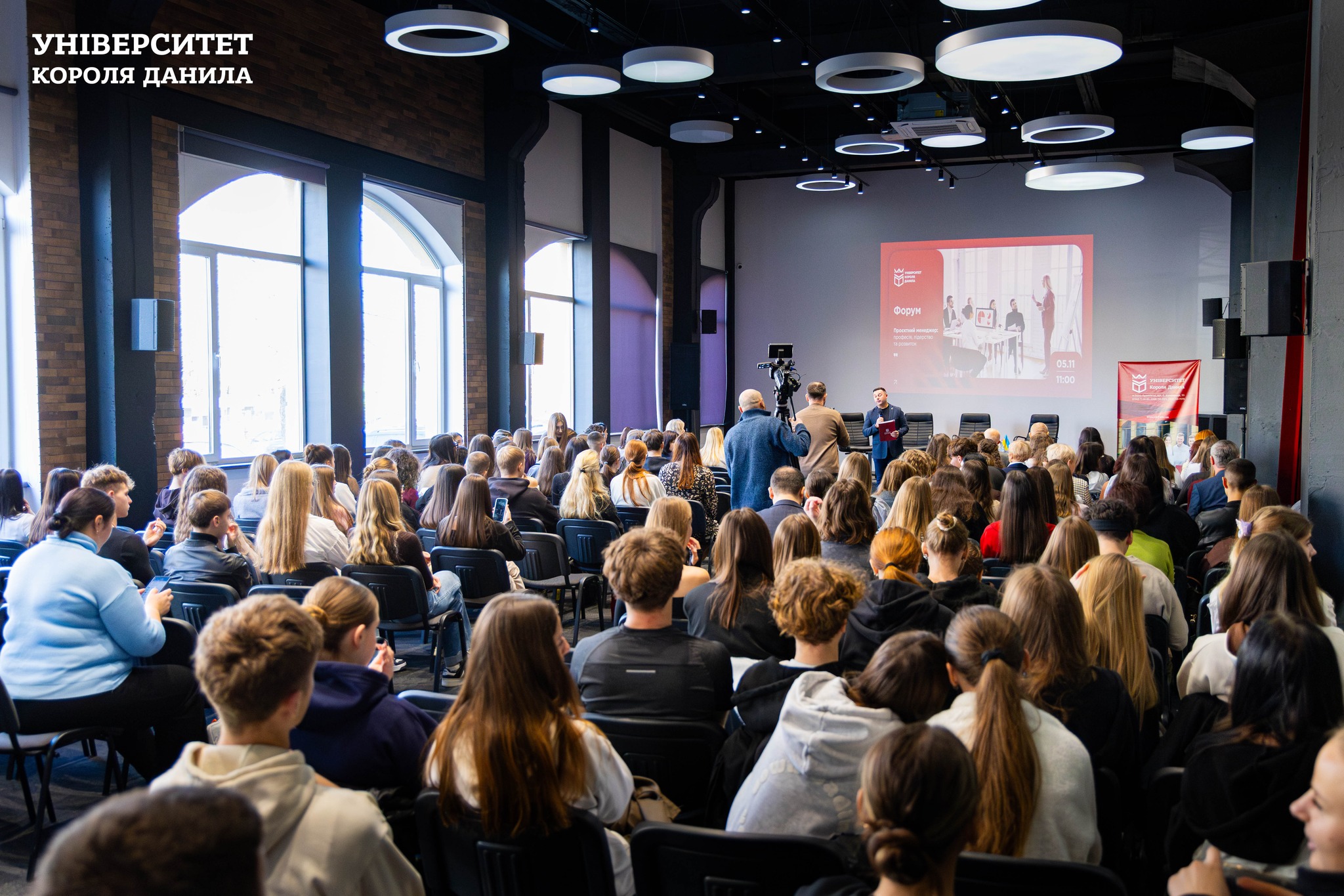 5 листопада Університет Короля Данила організував форум «Проєктний менеджер: професія, лідерство та розвиток». Захід об’єднав представників освіти, бізнесу, маркетингу, ІТ та громадського сектору, які поділилися власними практиками управління проєктами й обговорили, як проєктний менеджмент сприяє розвитку суспільства.