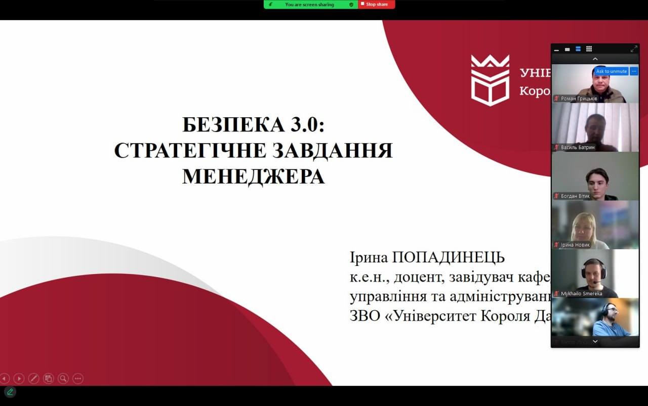Зокрема, завідувачка кафедри управління та адміністрування Ірина Попадинець виступила з доповіддю на тему «Безпека 3.0: стратегічне завдання менеджера», в якій підкреслила, що безпека 3.0 — це сучасний комплексний підхід до управління безпекою, який поза межами традиційних технічних рішень та інтегрує безпеку в загальну бізнес-стратегію компанії. Адже у світі, де технології стрімко розвиваються, а загрози стають все більш складними й масштабними, безпека перестає бути виключно технічним питанням і стає одним із основних стратегічних завдань менеджера.