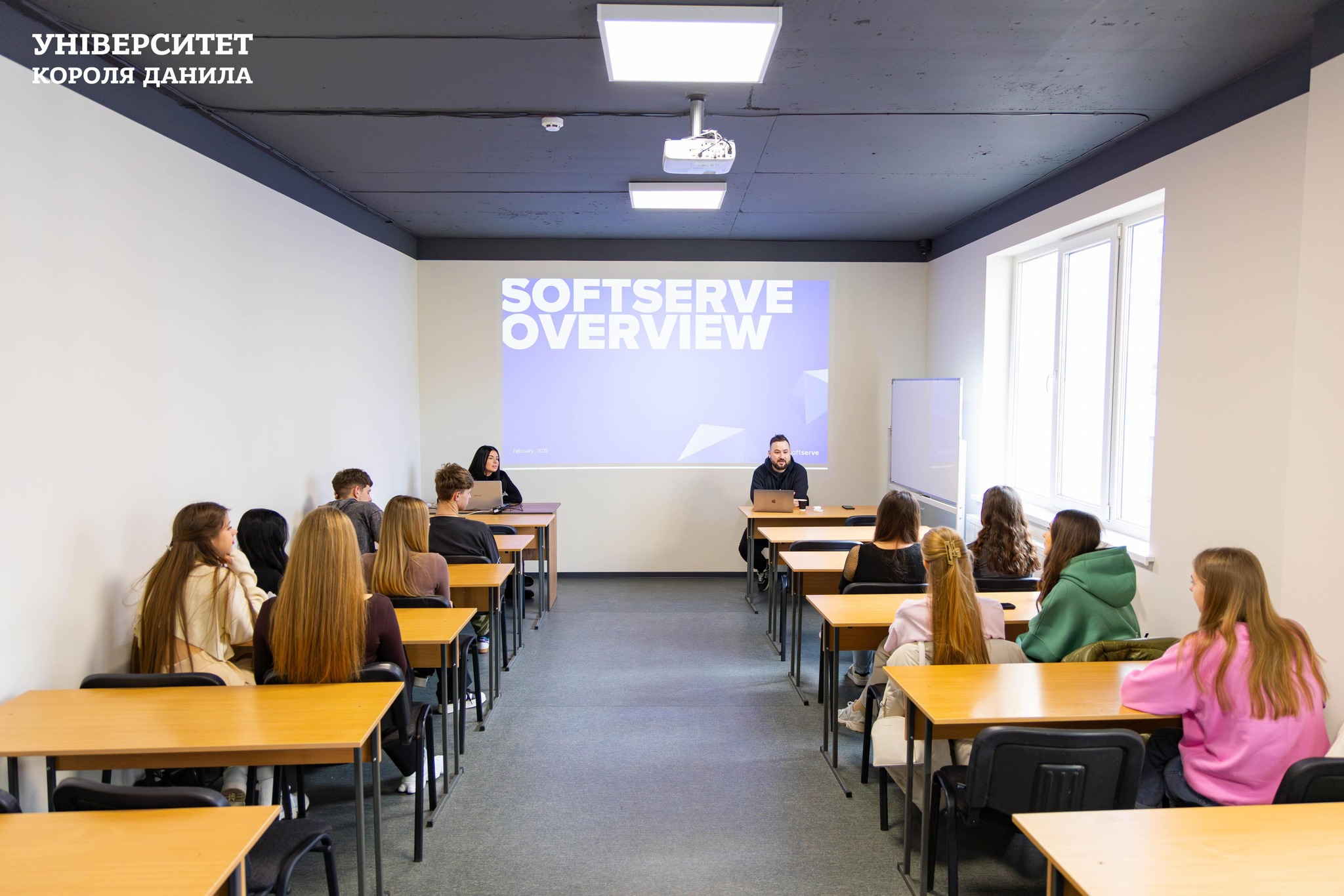 У рамках бінарного заняття дисципліни «Інноваційна діяльність», яку викладає Марків Марія, студенти груп Мнс-23-1 та ПТс-23-1 мали можливість поспілкуватись із Максимом Чкадуа, програмним менеджером SoftServe — найбільшої української ІТ-компанії. Так, пан Максим поділився цінними інсайтами про роботу в ІТ-сфері, розповів про реальні кейси й відповів на запитання студентів.