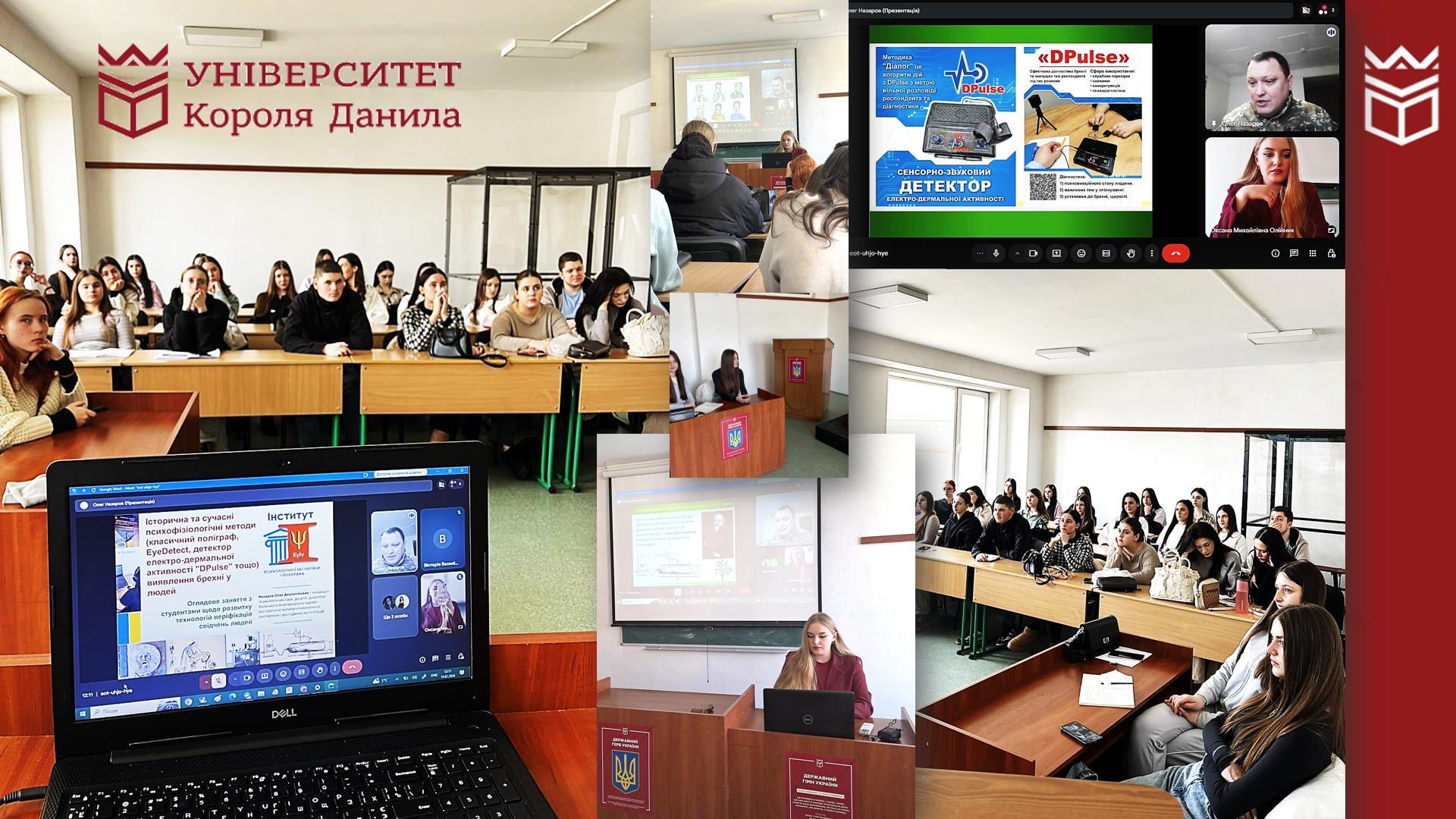 Під час зустрічі студенти ознайомилися з класичними поліграфними методиками, сучасними технологіями аналізу поведінкових і психофізіологічних реакцій (зокрема, EyeDetect), а також із детектором електродермальної активності DPulse — авторською розробкою спікера, його принципами роботи та можливостями практичного застосування в судово-експертній і психологічній практиці.