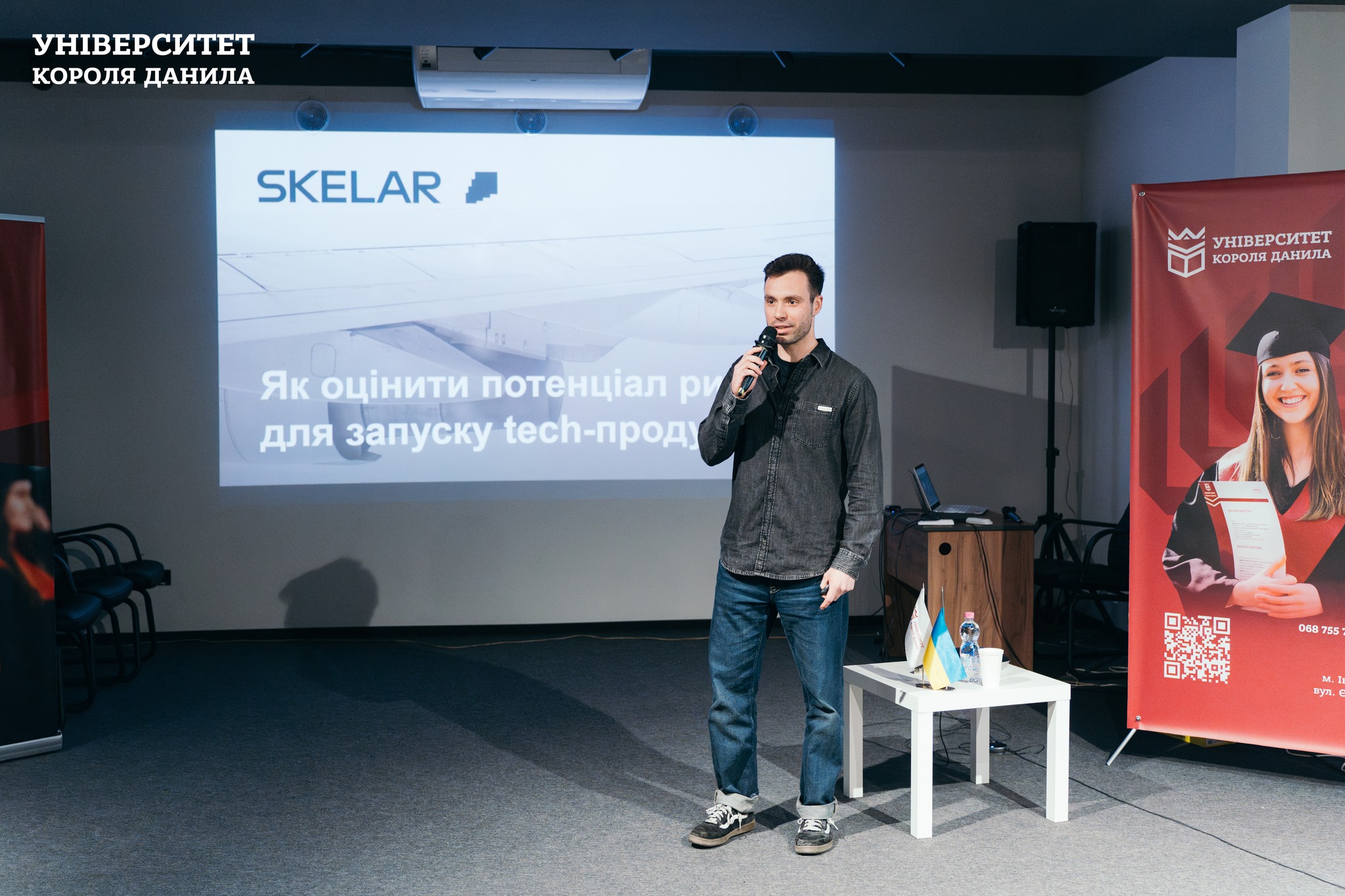 25 березня в Університеті Короля Данила відбулася лекція «Як оцінити потенціал ринку для запуску продукту?» від SKELAR x Horizon Capital. Прочитав лекцію Олег Карізський – Investment Manager у венчур-білдері SKELAR.