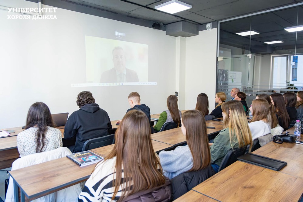 Захід провела доцентка кафедри іноземної філології та бізнес-комунікацій Наталія Гасюк. Онлайн долучився запрошений гість — професор Мічиганського університету Mr. Mark D. Potts.