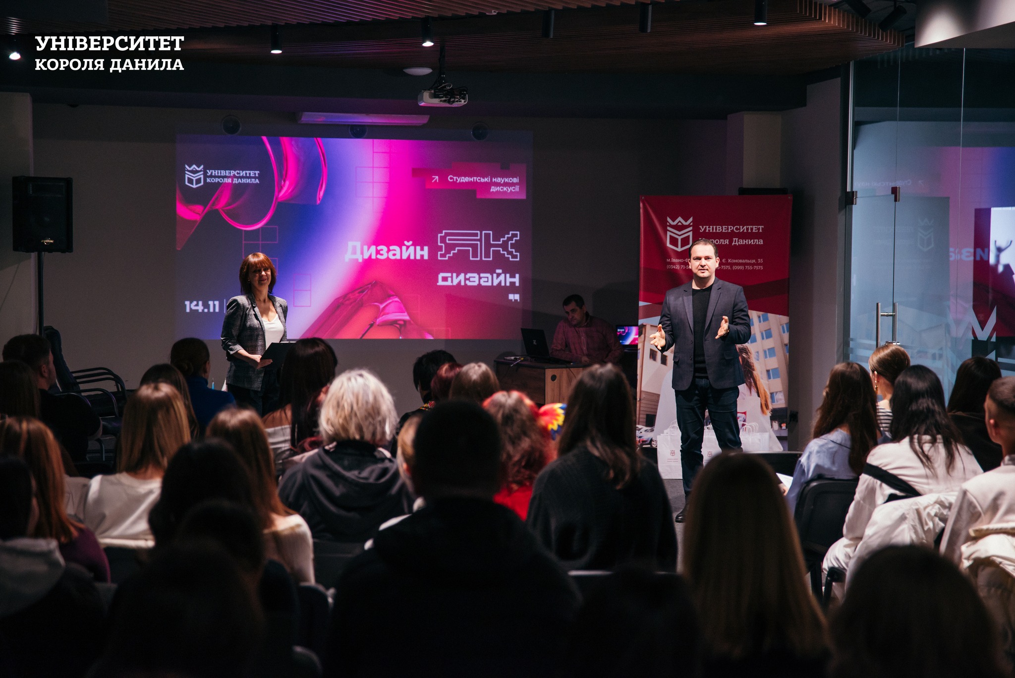 14 листопада в Університеті Короля Данила відбулися студентські наукові дискусії «Дизайн як дизайн». Захід об’єднав студентів, які презентували свої дослідження у сфері сучасного дизайну.