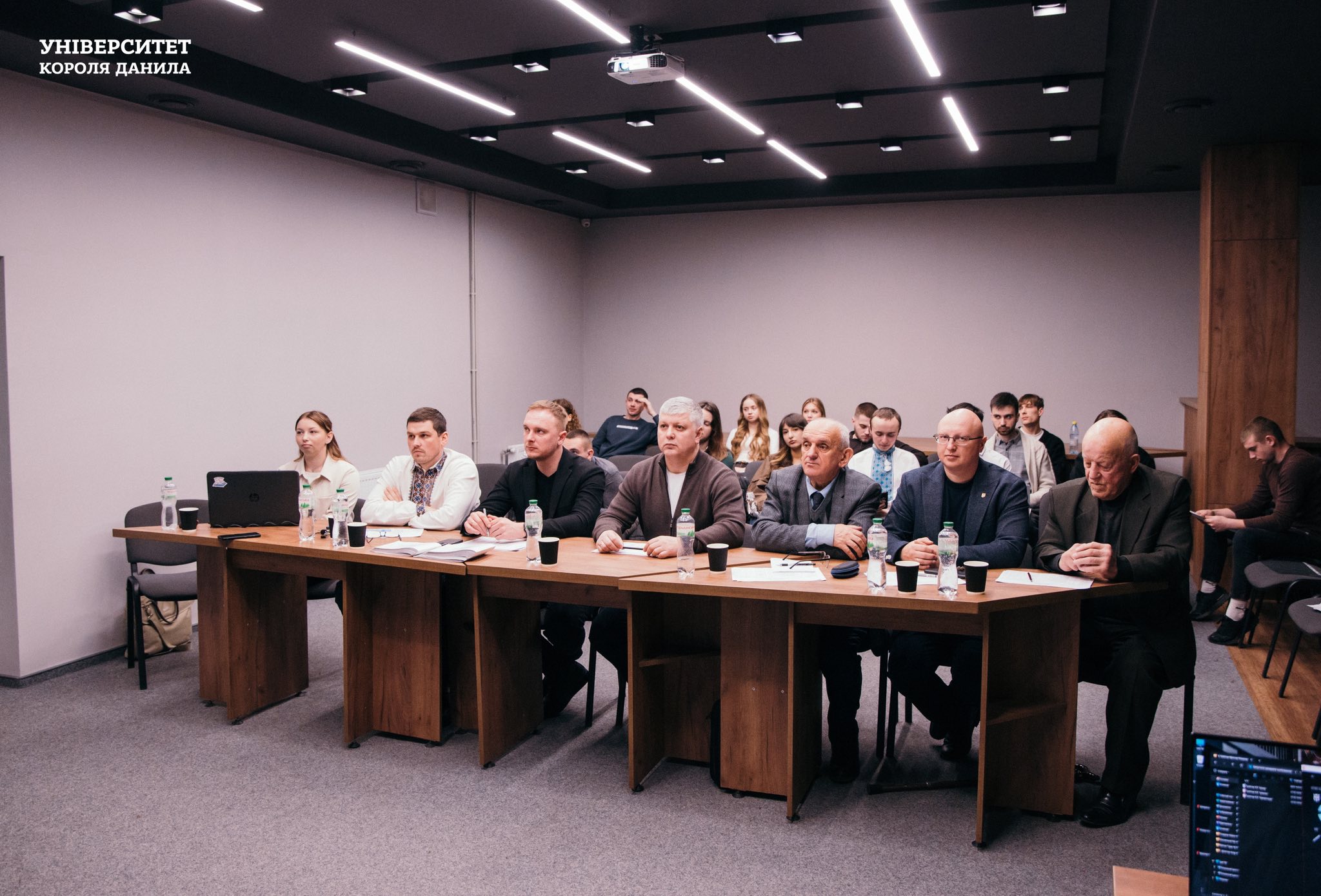 Захист відбувся за участі екзаменаційної комісії у такому складі: голова — Прокіпчук Артур Андрійович, керівник архітектурного бюро А 17; заступник — Косьмій Михайло Михайлович, перший проректор УКД, доктор архітектури, професор; члени комісії — Жирак Руслан Михайлович, доктор філософії, завідувач кафедри архітектури та будівництва, Габрель Микола Михайлович, доктор технічних наук, професор, професор кафедри архітектури та будівництва, Касіянчук Василь Дмитрович, кандидат технічних наук, професор кафедри архітектури та будівництва, Савчук Андрій Іванович, кандидат архітектури, доцент кафедри архітектури та будівництва. Секретар комісії — Гусар Катерина Дмитрівна, старший викладач кафедри архітектури та будівництва.