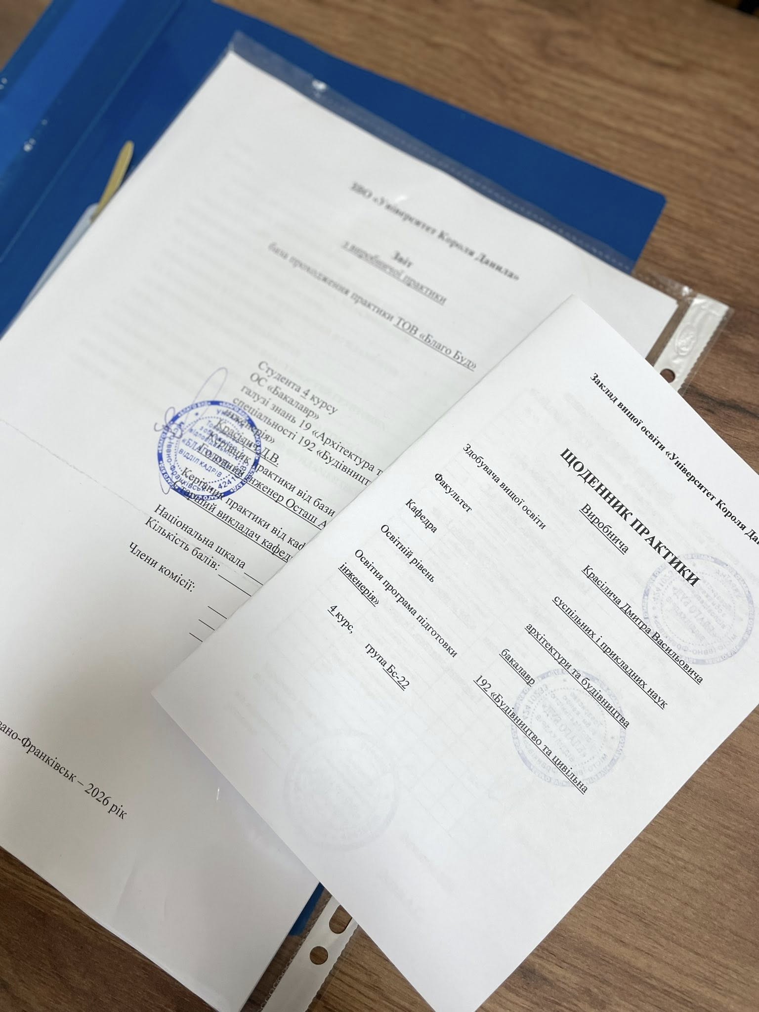 Сьогодні 23 лютого 2026 року в Університеті Короля Данила відбувся захист виробничої практики студентів IV курсу спеціальності «Будівництво та цивільна інженерія».