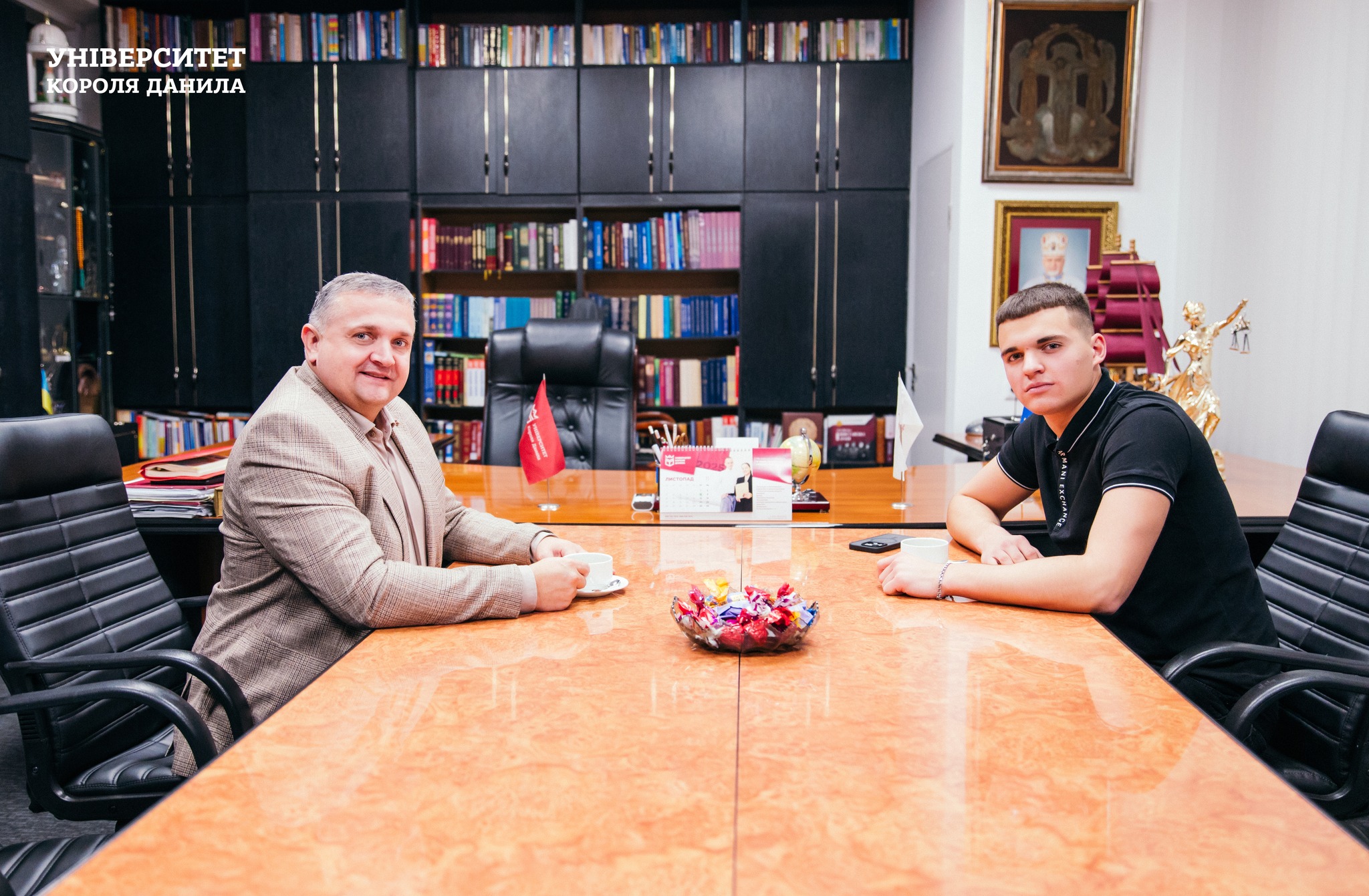 12 листопада студент спеціальності «Правоохоронна діяльність» Тарас Обідняк мав нагоду поспілкуватися з ректором УКД Мирославом Луцьким під час неформальної бесіди за кавою.