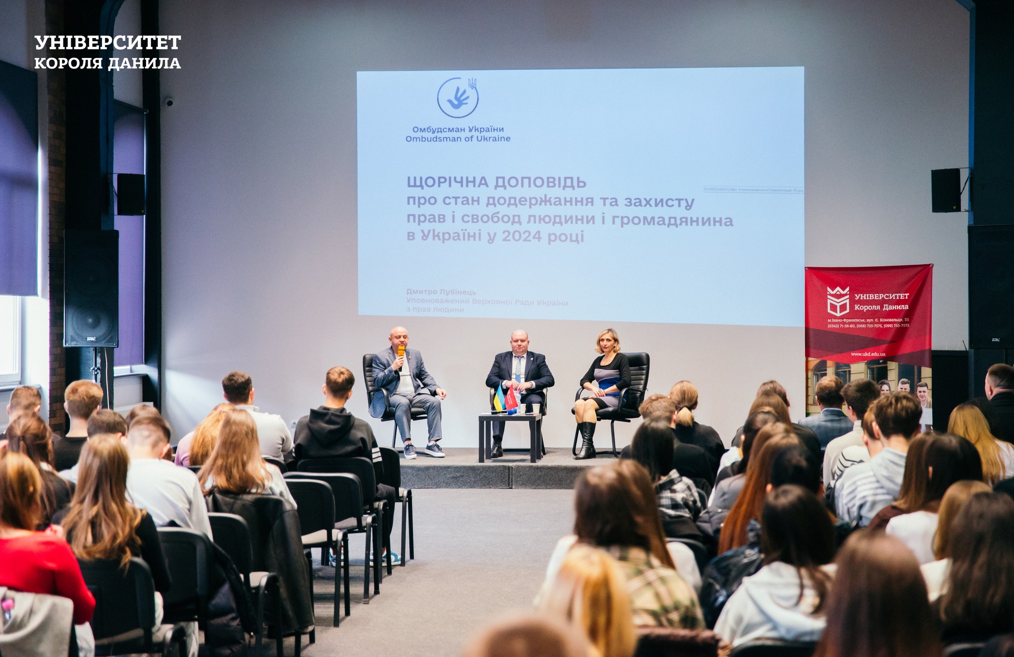 28 жовтня в Університеті Короля Данила відбулася мотиваційна зустріч студентів із представником Уповноваженого Верховної Ради України з прав людини в Івано-Франківській області Віталієм Вербовим та експерткою з моніторингу додержання прав дитини в проєкті Секретаріату Уповноваженого Тетяною Фурсою.